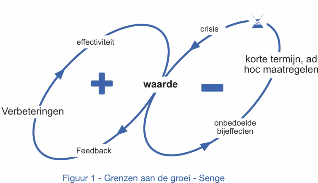 Een organisatie verkeert dus in een dynamisch evenwicht, zij kan tegen een stootje. Figuur 1 visualiseert dit aan de hand van het gedachtengoed Peter Senge.1